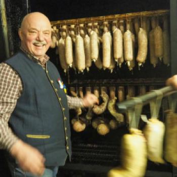 Wir schwingen uns in den Sattel und machen uns auf den Weg in die Kreisstadt des Vogelsbergkreises. Auf dem Schwalmradweg geht es gemütlich Richtung Süden. Eigentlich fahren wir entgegen der Fließrichtung der Schwalm, dem namensgebenden Fluss, doch es geht auch so gemütlich mit Abschnitten leichter Steigungen nach Lauterbach. Wir haben es nicht eilig und genießen den Weg durch Felder und Wiesen, durch kleine Dörfer und entlang der Schwalm. Kurz vor Lauterbach machen wir noch einen Abstecher zum Jägerhof nach Maar. Inhaber, Küchen- und Metzgermeister Hans Schmidt hat hier ein Paradies für Liebhaber regionaler Küche geschaffen. Ob Hausmacher Wurst aus der eigenen Metzgerei, Spezialitäten vom Vogelsberger Kräuterlamm, Wildspezialitäten oder Dry Aged Rindfleisch, hier befindet man sich im Himmel des regionalen Genusses. Wer mag kann hier auch sehr gut übernachten, wir fahren nach dem ausgiebigen Mittagessen noch weiter nach Lauterbach.