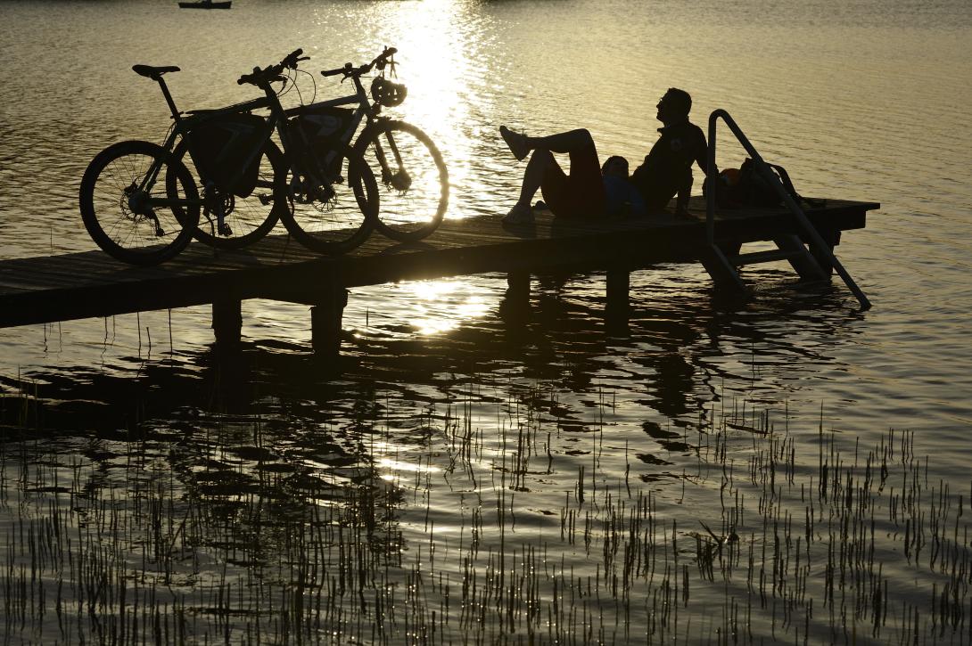 Vorbei am riesigen Biathlonstadion brachte uns ein herrlich welliger und kurvenreicher Radweg zuerste durch einen funkelnden Märchenwald und dann zu Hans, der freudestrahlend seine Hechte vermaß.
