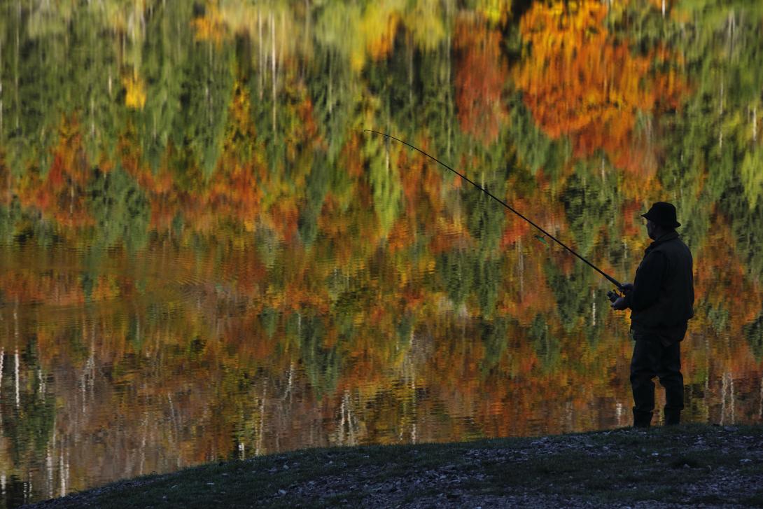Hans Meinecke's Jubelschrei hallt zigfach von den umliegenden Wänden. Gerade noch spiegelten sich die quietschgelb bis kupferroten Laubbäume 1:1 in der ruhigen Oberfläche des Weitsees. Doch nun zieht der erfahrene Fischer schon seinen zweiten kapitalen Hecht aus dem Wasser und das gestochen scharfe Abbild zerfließt abermals zum herbstlich psychedelischen Impressionismus.