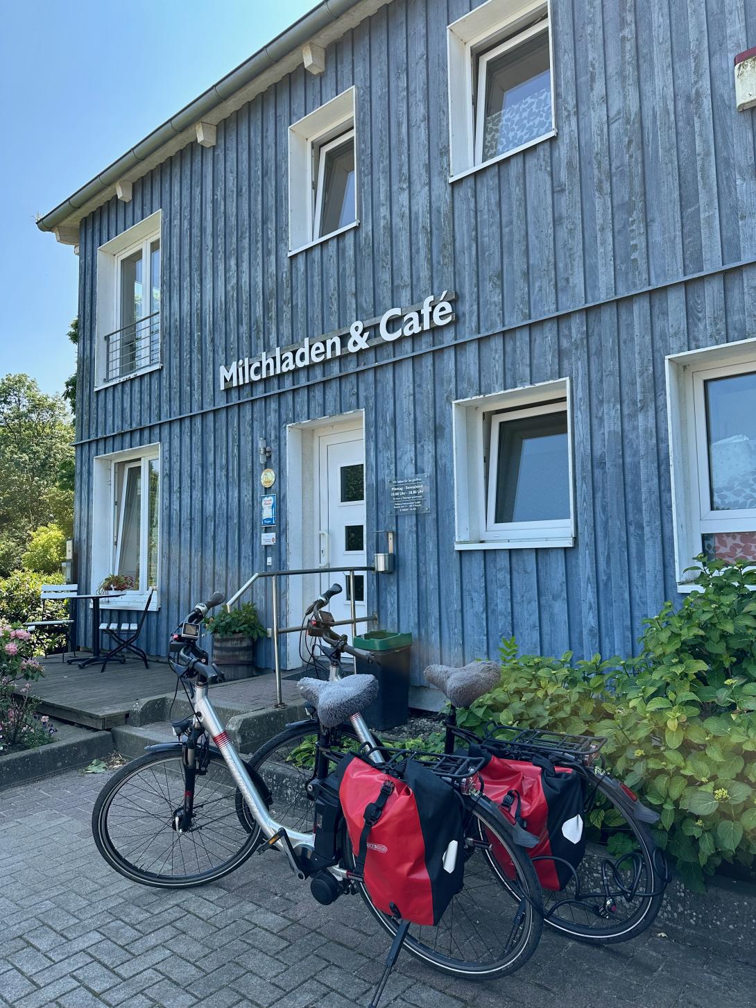 Das Kopfsteinpflaster in den Gassen rüttelt erst mal wach. Vielleicht sollte man auch mal anhalten, um sich auf dem Weg Richtung Hafen die wunderbar restaurierten ehemaligen Kaufmannshäuser anzusehen. Und am Hafen warten dann noch die Gorch Fock I. und das Ozeaneum zur Besichtigung. Aber diese Kulturerlebnisse sparen sich viele für weniger radfreundliches Wetter auf. Ein erster Ausflug führt gerne hinüber in den Süden der Insel Rügen. Auf der großen Rügenbrücke, seit 2007 ein neues Wahrzeichen von Stralsund, herrscht Radelverbot. Deshalb führt die Radroute über kleinere Brücken und den Rügendamm zur vorgelagerten Insel Dänholm und weiter zu Deutschlands größter Insel. Dort gilt ein erster Stopp dem kleinen Hafen in Altefähr. Dorthin gelangt man auch mit dem Fährschiff von Stralsund – wie früher, nur nicht mehr mit dem Raddampfer. Zwischen den Segeljollen und dem Fähranleger hat man nämlich den besten Blick auf die Silhouette von Stralsund. Vorbei an der geschichtsträchtigen St. Nikolaikirche und einige schmucken Reetdachhäusern führt unsere 50-Kilometer-Tour durch den Südwesten Rügens. Weites Land, Wind und viel Ruhe erwarten den Radler jenseits der B96 auf dem Weg zu den Weilern Grabitz, Rambin und Drammendorf. Über die Neun Berge – es sind eher neun sehr sanfte Hügel, über die viele Märchen erzählt werden – führt die Strecke wieder Richtung Süden, vorbei an weiten Feldern und Bauernhöfen. Spätestens in Poseritz lockt ein überaus sympathischer Stopp: Café und Hofladen der Molkerei „Rügener Inselfrische“. Der Radlermagen lässt sich dort auf angenehme Weise füllen, etwa mit frischem Joghurt mit Früchten, Kaffee und Kuchen, aber auch Deftigem, wie Backkartoffeln mit Matjes oder Sülze.