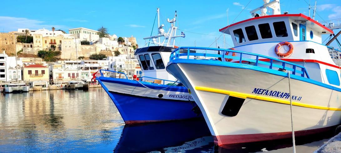 Eher einsam ist es am Tempel der Demeter, der sagenhaften Göttin der Fruchtbarkeit und Landwirtschaft. Der Schwester des Zeus wurde einst in der Einöde südlich von Sangri gehuldigt, die Überreste des eindrucksvollen Tempels werden sehr ansprechend präsentiert, der Weg dorthin führt für Radler durch abgelegene Dörfer und über kurvige Sträßchen. Das gilt auch für unsere Tour hinauf in die Berge. Diese wachsen terrassenartig aus dem Inselinnern nach oben, dass der höchste Punkt genau 1001 Meter misst, ahnt man bei der Anfahrt nicht. Man spürt die Berge aber in den Beinen. Trotz Ebike muss man ordentlich in die Pedale treten. Ein Stopp beim darniederliegenden Marmorjüngling Kouros im herrlich grünen Tal von Flerio kommt da gerade richtig. Der über fünf Meter große Riese ruht unter schattigen Platanen und Feigen, wieder zirpen die Zikaden, irgendwo plätschert es, es duftet nach Orangen und Zitronen…Über Melanes strampelt und schnauft das Bayern-Peloton hinauf ins Dorf Chalki, längst zum beliebten Ausflugsziel geworden. Pittoreske Gassen, viele Blumen, urige Kafenions, die bekannte Kitro-Destillerie der Familie Vallindras – Chalkli hat einiges zu bieten. Der Kitro-Likör wird aus den Blättern des immergrünen dornigen Kitro-Baums hergestellt und in drei Farbvarianten verkauft, je nach Alkoholgehalt. Stilvoll genießen ihn die Insulaner im Kitron-Cafe am Hafen von Naxos, wo es bis weit nach Mitternacht selbst an herbstlichen Abenden rund geht.