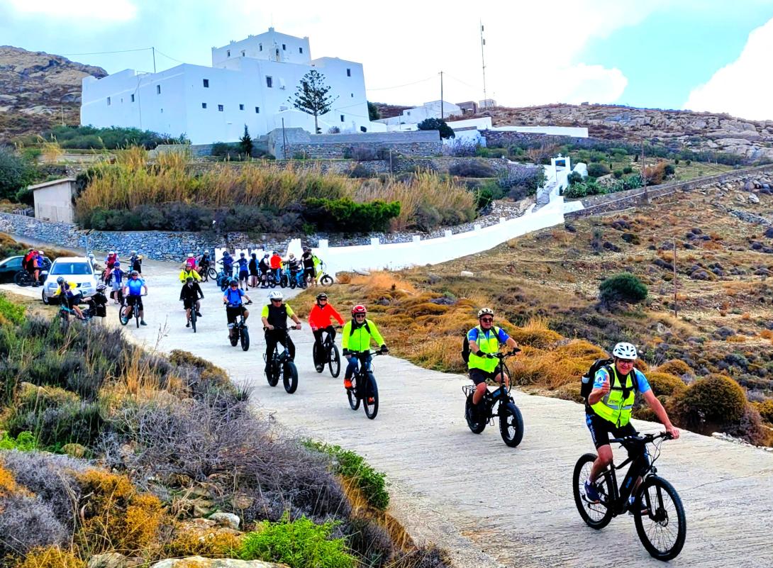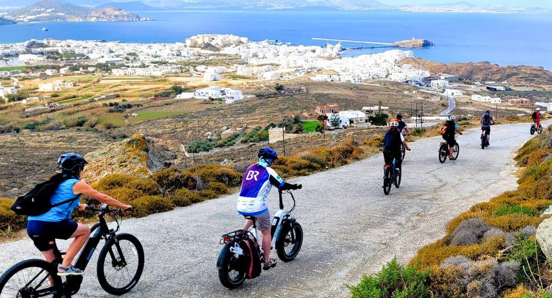 Dieses Blau ist nicht zu fassen: Türkis schimmert es an den milden Sandstränden im Westen. Weiß schäumend im Norden.  Und Royal am Himmel über Naxos. Dazu ein Licht, das es so in Deutschland nicht gibt. Es strahlt warm in die Herzen der Radler aus dem hohen Norden und berührt ihre Seelen. Auf der größten Insel der Kykladen wird Fahrradfahren zu einem Erlebnis jenseits von Akku-Stärken oder Pedalfrequenzen. Und es wird sogar fast ein bisschen exotisch: auf engen Straßen mit dicken Marmortransportern oder ungeduldigen Businesspiloten um den Platz zu streiten, ist nicht jedermanns Sache. Kein Wunder, dass unser 40-Radler-Peloton aus Bayern oft mit großen Augen empfangen wird. Während unserer achttägigen „Tour de Naxos“ sind wir gerade mal fünf(!) einheimischen Pedaleuren begegnet…