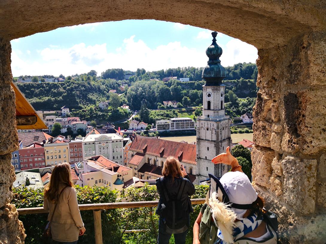 Von Burghausen trennen uns nur noch wenige Kilometer und zum Schluß eine längere Bergabfahrt direkt ins Zentrum. Von weitem kann man schon die berühmte Burg sehen. Sie ist ja mit 1051 Metern die längste ihrer Art in ganz Europa und ein Pflichtprogramm, wenn man in Burghausen ist. Dazu sollte man noch einen Abstecher in die nostalgische Gasse „In den Grüben“ machen und sich auch den weitläufigen historischen Marktplatz gönnen. Danach radeln wir bergab und über die neue Brücke auf die österreichische Seite, weil die alte Brücke eine gegenläufige Einbahnstraße ist. Schieben darf man natürlich schon. Drüben fährt man links am Ufer entlang für etwa 500 Meter, bis dann ein Radweg bergauf zum Hochufer abzweigt. Ein kurzes Stück ist es knackig steil. Oben kann man rechts einen Abstecher zum Waldgasthaus Naturfreunde machen, wo man von der Terrasse den wirklich allerbesten Blick auf Burghausen hat. Danach geht es noch ein Stück hinauf zur Weilharter Landesstraße und dort etwa acht Kilometer Richtung Braunau, bis man wieder links hinunter fährt zum Inndamm. Die nächsten sechs Kilometer bis Braunau fährt man wieder direkt am Ufer entlang. Auch Braunau hat einen schönen und weitläufigen Stadtplatz im klassischen Inn/Salzach-Stil. Der Radweg zieht sich hier weiter zum Inn entlang nach Norden. Allerdings nur für rund zehn Kilometer, denn dann wechseln wir wieder auf die bayerische Seite bei Egglfing und fahren weiter, kreuzen bei Suben die Autobahn A3 und kommen schließlich zum Südrand von Neuhaus und wechseln auf der alten Innbrücke hinüber nach Schärding. Schärding ist mit seinem prachtvollen barocken Baustil einen weiteren Grenzwechsel wert. Dazu geht es auf der alten Brücke hinüber, fährt man ein Stück an der Innlände und wechselt ins Zentrum mit dem Unteren und Oberen Stadtplatz. Früher war es hier üblich, dass die Häuser in den Farben der entsprechenden Zünfte gehalten waren, also in diesem Fall blau für einen Bäcker, gelb und grün für die Wirte. Mehr zur Geschichte erfährt man im Stadtmuseum, das im äußeren Burgtor eingerichtet ist.Auf der letzten Etappe nach Passau bleiben wir wieder auf der rechten Seite, machen einen Stopp in Wernstein bei der historischen Mariensäule mit schönem Blick hinauf zum stattlichen Schloss Neuburg, das heute ein Tagungszentrum ist und dem Landkreis Passau gehört. Bald erreichen wir Passau, wo wir über die Marienbrücke in die Altstadt radeln. Ein Spaziergang zum Dreiflüsseeck ist für jeden Besucher eigentlich ein Muss. Auf dem Weg dorthin locken viele Sehenswürdigkeiten, darunter der Stephansdom, der an der höchsten Stelle in der Altstadt steht und nach einem Brand 1662 neu aufgebaut und prachtvoll im Stil des Barock ausgestattet wurde. Es ist ein Kirchenbau der Superlative nicht nur wegen seines verschwenderischen Innenlebens. Er gilt als die größte Basilika nördlich der Alpen und beherbergt dazu die größte Domorgel der Welt mit 17.974 Pfeifen und 233 Registern. Nicht weit davon ist das Goldene Schiff, ein sehr bayerisches und empfehlenswertes Wirtshaus.